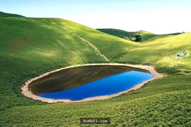 嘉明湖是台湾有名的深山景观,因为湖面为椭圆状,又有着深如蓝宝石般的色泽,有着“天使的眼泪”之美誉。