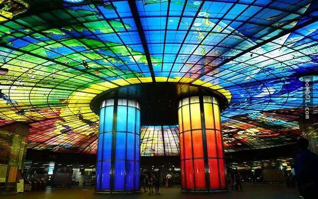 在高雄除了骑车或开车外,也可以搭乘高雄捷运。位在高捷的交叉点,枢纽的美丽岛站有不少特别设计的建筑景观,其中最引人赞叹的便是这面玻璃穹顶,让人怎么看也不厌倦。