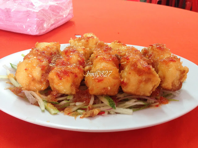 泰式豆腐的口感不错,因为整个是炸得比较蓬松的。 而且泰式酱配上黄瓜和洋葱,就是特别开胃。