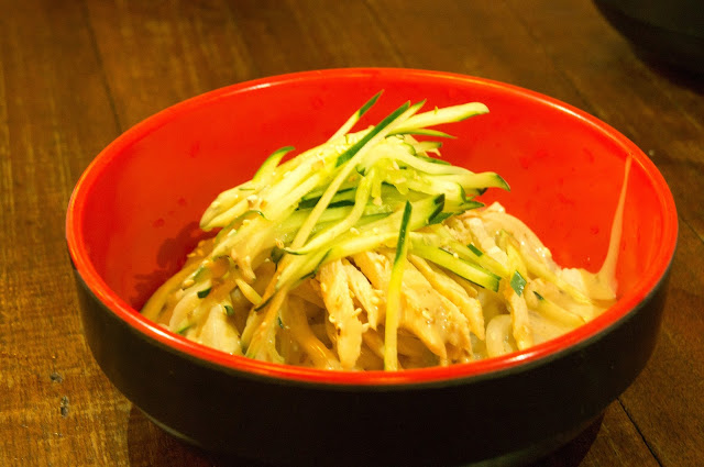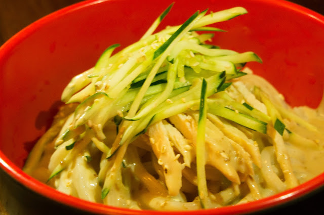 我们还另外点了冷的 Hiyashi Goma Udon。 面里放了不少的芝麻颗粒,除了增添香气外,还很好的提升了面整体的口感。 一端上桌就可以闻到很香的芝麻味,面的芝麻酱不会太厚,浓度刚刚好。 一开始我还担心说冷面会有点难以接受,可是完全不会。 这里的冷面不会让人吃得有负担,不会冷得让人反胃。 而且冷面的做法让面条更Q,韧性更好,吃起来的口感更好。 Hiyashi Goma Udon 的配料有黄瓜丝和鸡胸肉丝,是一道带有夏天气息的面类。