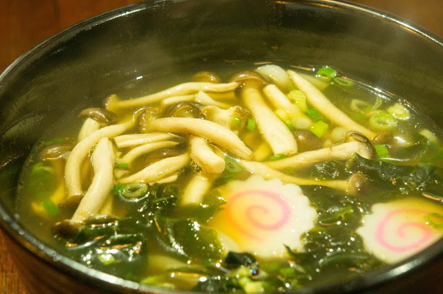 我和欧巴点了一碗热的 Kinoko Udon。 乌冬面的汤头清甜,不会油腻,清清淡淡的好滋味。 面里有爽口的鸿喜菇 (Shimeji Mushroom) 和海苔,都是清淡面类的好伙伴。 由于我们选择的是热的乌冬面,所以面吃起来比冷面较没有韧性。