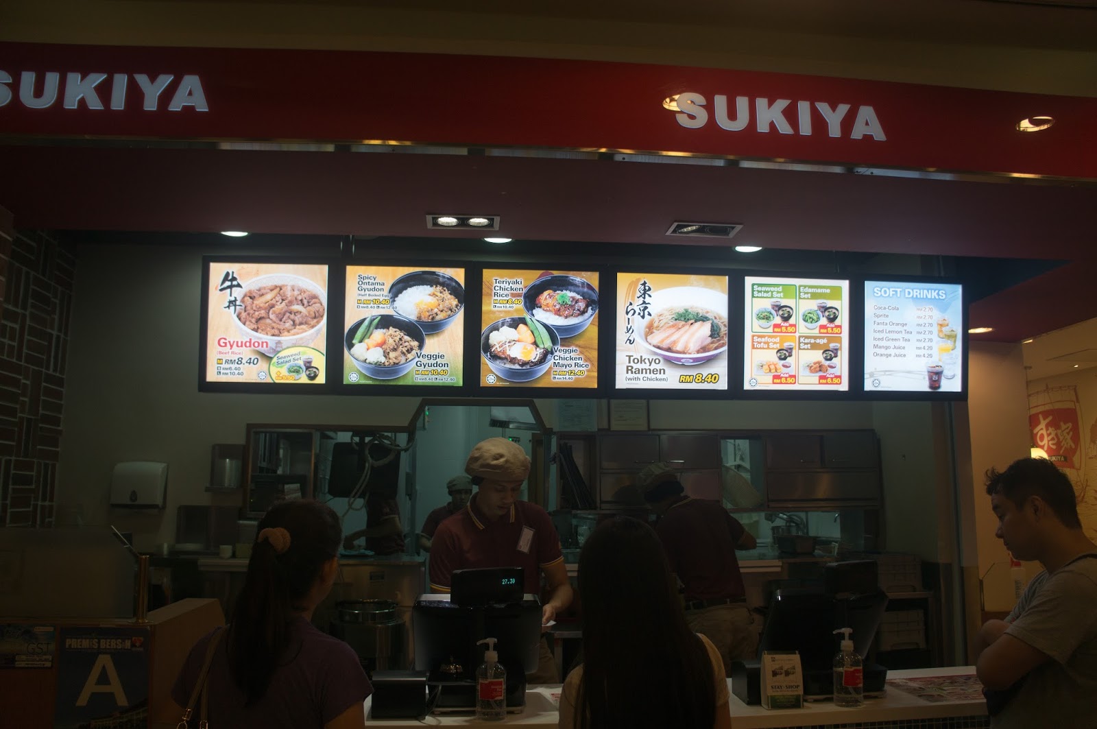 今天与欧巴到 IOI City Mall 闲逛,抵达时已经有点饥饿感了,所以就选择了这家日式快餐来过腹。 之前和欧巴到日本自助旅行时就曾尝过它们 Sukiya 的牛肉丼 (Gyudon),难得在这里有分行,于是就和欧巴赶紧去试一试。 Sukiya 位于 IOI City Mall 的底层,人流很多。