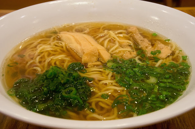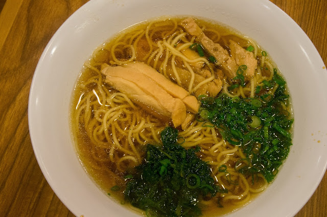 拉面的汤看起来有点油,汤头尝起来清甜微咸。 鸡肉方面,煮的有点材。 面条是选用细面。 相对于台湾和日本的来说,味道普普。