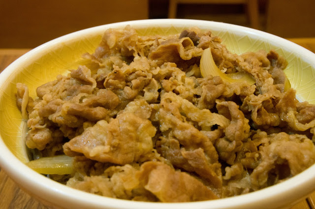 牛丼方面,选用的牛肉比教瘦。 对我来说,味道比较咸,也比较多汁。 跟日本的店比较起来说,牛肉分量比较少。 可是可取的是,这里完全实践了快餐的营业精神。 食物准备的很爽快,而且上桌时是热的冒烟。