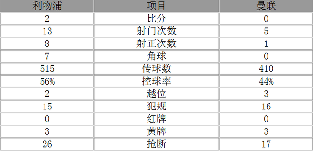 主场作战的利物浦踢了一场出色的比赛,射门13比5,射正8比1,角球7比0,控球也56%占优,如果不是曼联门神德赫亚表现惊艳,红军还能多进几个球。
