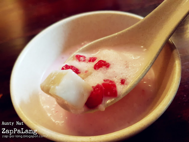这个甜品也是我爱点的,椰浆风味的甜汤里头有软濡的芋头块和红红一颗颗裹了粉浆的马蹄粒,闪闪发亮如如宝石般,很赏心悦目呢。味道当然也是不错滴,很适合当饭后甜点!