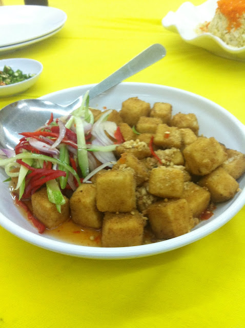 椒盐豆腐是自制豆腐配上泰式酱,再加上花生碎做成。自制豆腐炸得外脆内软嫩,外头再撒上胡 椒和盐 。少许的酸辣,更能带出整体的味道,开胃可口,是一道很好的开胃菜。