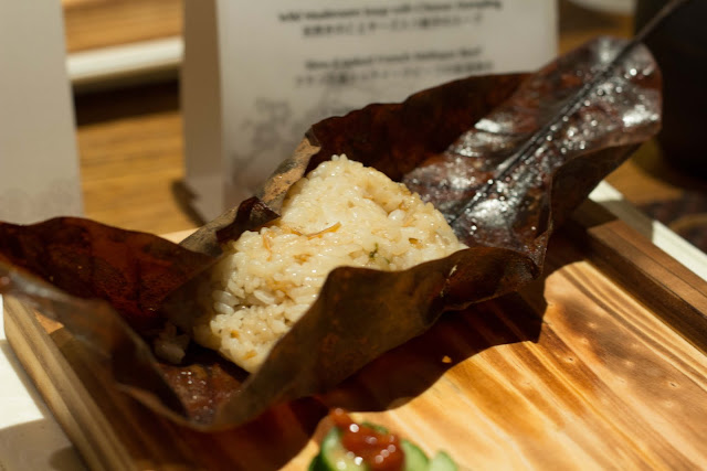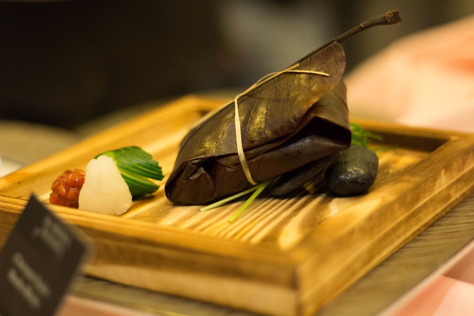这道是Xenri 里很受欢迎的朴叶饭 (Chirimen Jyako Houba Meshi),源自日本京都。所采用的朴叶是从日本进口的,米是与山椒粉 (sansho,一种从日本入口的椒粉) 一起蒸成饭,是日本料理爱好者最喜欢的一道简单却讲究技巧的日本美食。朴叶饭一端上桌,还未大开就已经香味扑鼻了。厨师选用了朴叶,因为它本身的独特香气,经过蒸后让米饭粒都带着香气了。饭里混合着 Chirimen Jyako (如图中所看到的小鱼),为这道朴叶饭增添了一些海鲜的鲜味,也提升了整体的口感,我和欧巴都吃得津津有味。