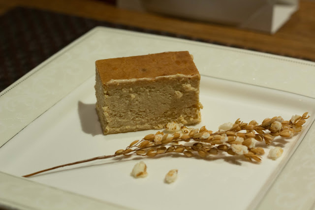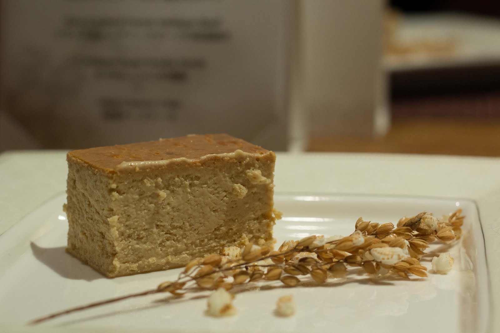 相信日本美食爱好者如我和欧巴对 Miso (味噌) 应该都不会感到陌生吧。我本身就很热爱 Miso,但这个常用于提供咸味的 Miso 竟然可以做成甜点,Miso Cheesecake?不得不佩服 Xenri 厨师的创意,利用 Miso 做成芝士蛋糕,搭配上新鲜爆“日本米”花。这个是使用日本运来的新鲜米,并且炸至爆开,口感和味道有点类似没有调味的爆米花。这个味噌芝士蛋糕比较湿,口感绵密,带着浓郁的 Miso 香气。通常,芝士蛋糕给人的印象都是甜甜的,但配上咸咸的味噌,甜咸的搭配得很不错,让整体更富有层次感,给了我们大大的惊喜。