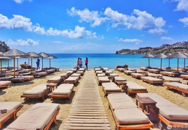 论休闲度假的“江湖地位”,在爱琴海海域与圣托里尼齐名的,米科诺斯(Mykonos)算其中一个。这个距离雅典约2小时船程的海岛以4个S闻名于爱琴海:Sex(性)、Sun(太阳)、Sea(海洋)、Sand(沙滩),蓝天、白房、和人体的“肉”色组成它的三原色,西方人总是用“最接近天堂的小岛”形容它。