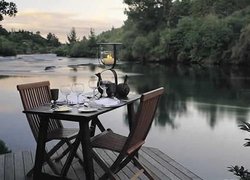 怀卡托河流过北岛,穿过了绿色的荒原,来到了这个17英亩的庄园,让人有一种原始的感觉。你的餐桌放在哪里可以由你自己来决定,有16个地点可供选择,你可以决定属于自己的浪漫。这里的菜单每晚都会改变,当你钓鱼或蹦极回来时,可以享受你自己风格的浪漫晚餐。