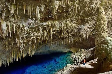巴西蓝湖洞。(网络图片) 巴西马托格罗索地区拥有很多神奇的地下湖泊。世界著名的蓝湖洞就是其中之一。其内部的钟乳石、石笋数不胜数,更有美不胜收的辽阔无边的蓝湖令人赞叹不已。蓝湖各种各样的地质风貌令人叫绝,内湖深蓝色的水更使游客留恋忘返。