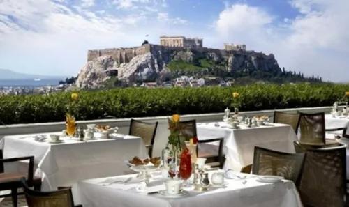 这家露天餐厅建在雅典布列塔尼大酒店的屋顶,在这里可以看到雅典古城的主要景点。餐厅的右手边是标志性的雅典卫城,左手边则是泛雅典体育场(Panathenaic Stadium,首届现代奥运会的举办地点)。