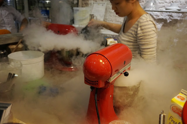 使用液态氮现做雪糕,在制作时店内都会烟雾迷漫,有如处在仙境!哈哈(小编好像夸张了)