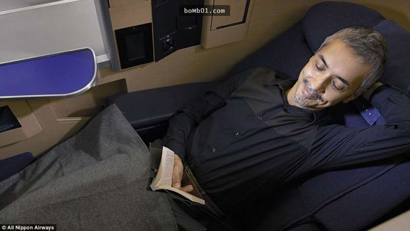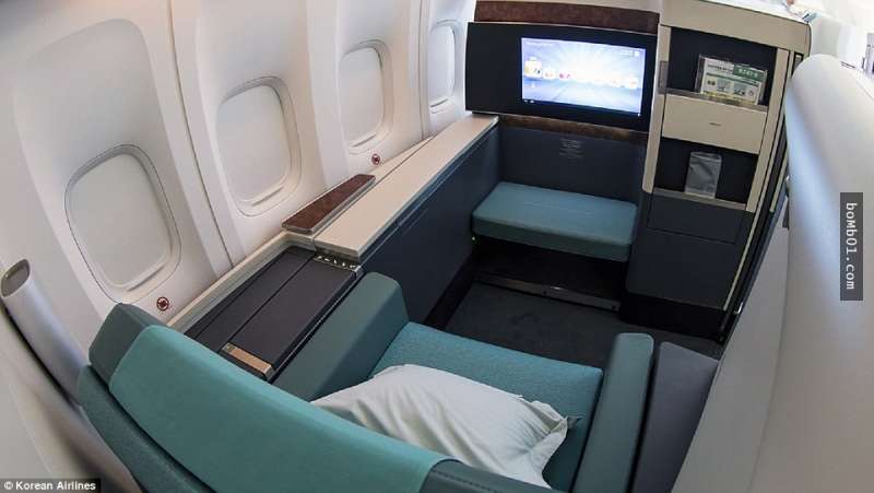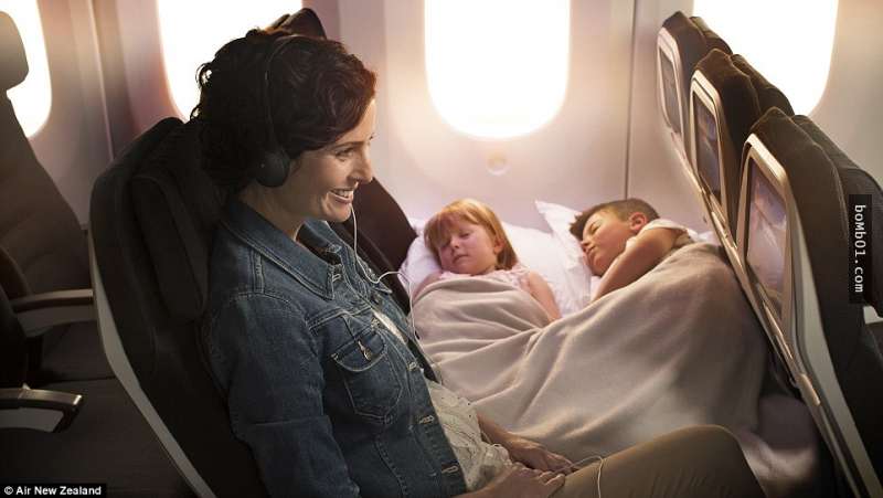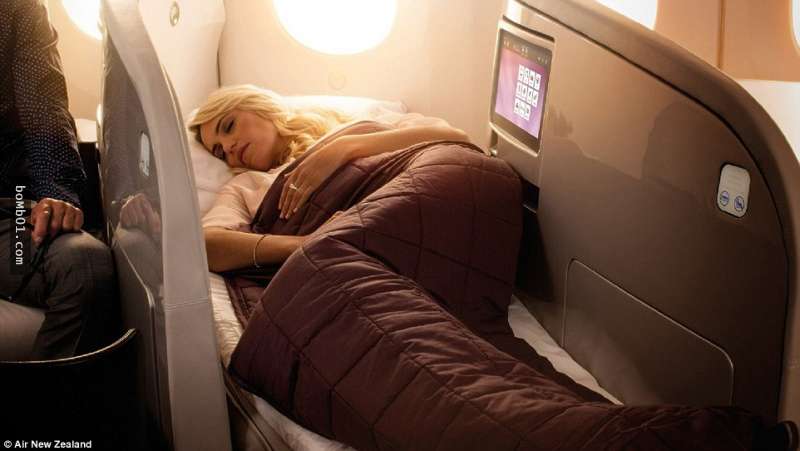 纽西兰航空:舒服的平板床让人安心休息,私密性也很强。