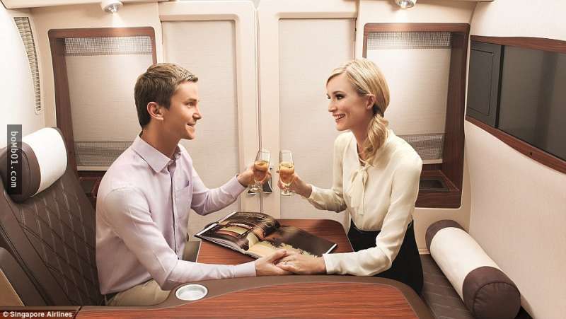 ▼2.新加坡航空:两人旅行的最佳选择,里面有88.9cm的宽敞座椅,还能调整为平卧床。里面还有菲拉格慕行动式旅行套装丶1000多种娱乐选项。想要在高空玩浪漫,还能调节情景灯光。