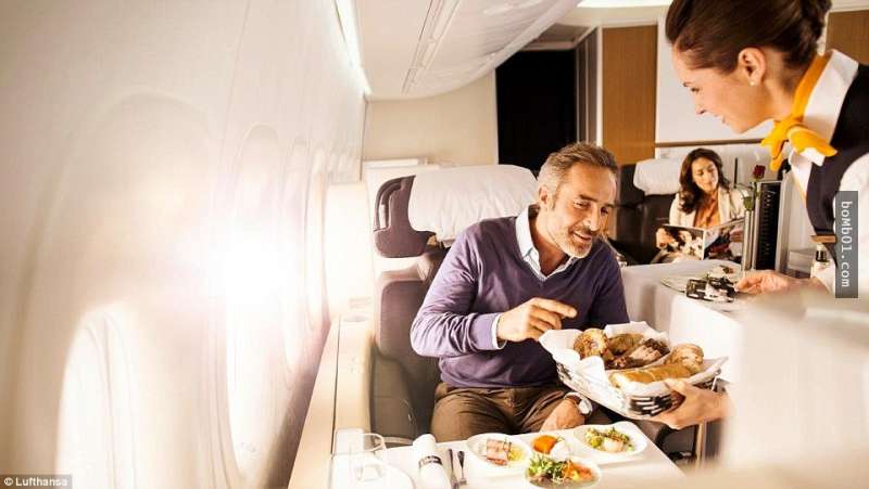 汉莎航空:这里的座椅是根据人体工程学原理设计的,还能伸展开变成两米长的床。