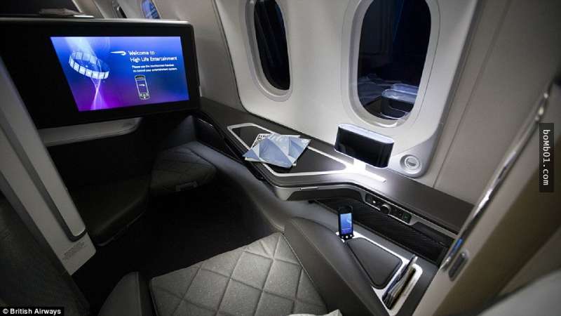 英国航空:这里的私人区域很宽敞,还有舒服的平板床。想做个Spa丶去吧台喝一杯也很方便。