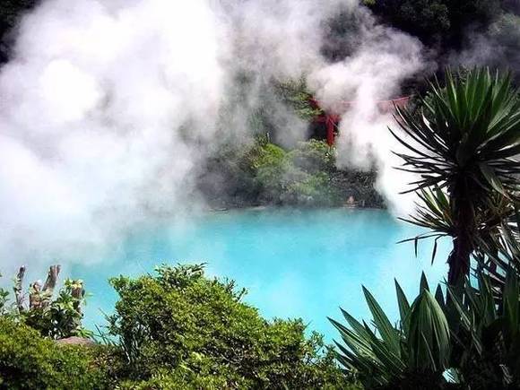 位于别府市东部的地狱温泉是日本最有名的观赏性温泉。由于温泉水温度过高,烟雾蒸腾犹如地狱景象,因此被称之为“地狱”。被列入地狱温泉巡游区的有八个,色泽有红、蓝、绿、褐、透明无色等。地狱温泉还有自己独特的名产——黑玉子,这是利用地狱的高温蒸煮鸡蛋,只需5、6分钟时间,一篮新鲜鸡蛋就熟了,还带有淡淡硫磺味。