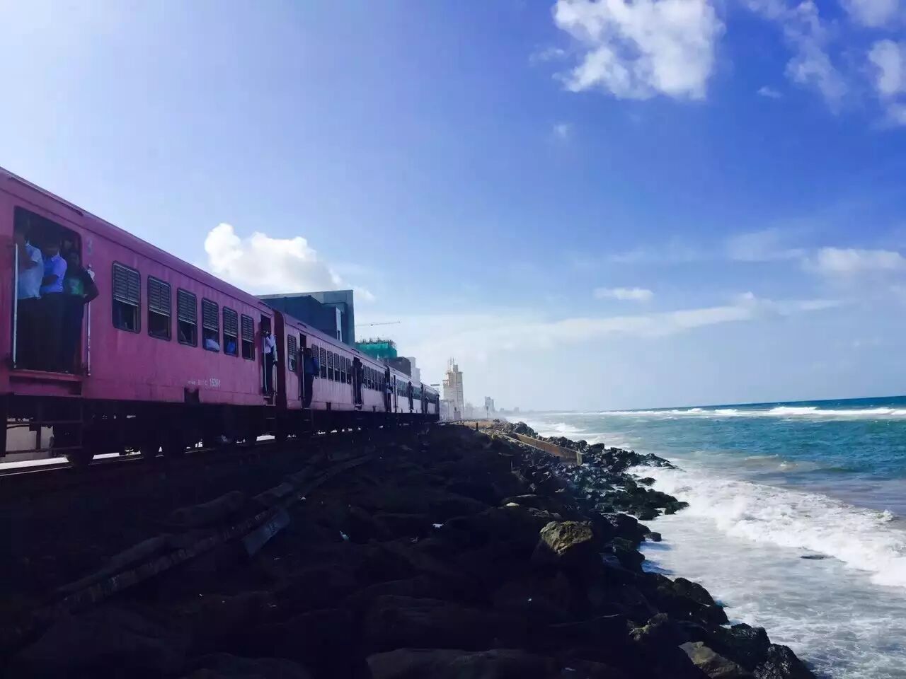 从科伦坡到加勒的这段铁路依海边而建,离海岸最近处只有3米。你坐在飞驰向下一个目的地的火车上,车厢两边一面是郁郁葱葱的森林和稻田,一面是浮光跃金的印度洋。