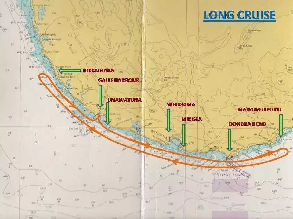 图片:getmyboat.com兰卡公主号5月份到10月在亭可马里出海,11月到4月则转移到南海岸的加勒。它的观鲸线路有三条,最长的一条时间为5个小时,从加勒出发,在南海岸绕一个大圈,美蕊莎海域也包括其中。坐着威武霸气的军舰,和简陋的渔船一起追逐鲸鱼,分分钟有种天下我有的赶脚。