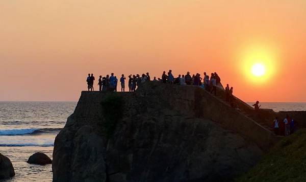 每天清晨,站在旗岩上,往灯塔方向望去,太阳从卢马萨拉方向缓缓升起,整个印度洋被照射成金色,而傍晚背向灯塔方向可以看到壮丽的印度洋日落。