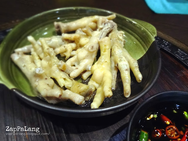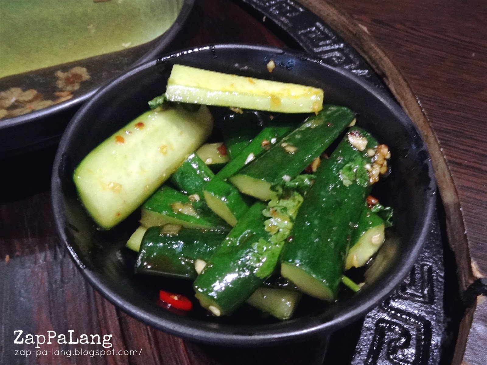 当我们还在翻餐牌的时候,服务员就先端来两盘前菜了。这里的前菜很特别,不是一般的花生零嘴,而是一大盘的当归凤爪和凉拌黄瓜。