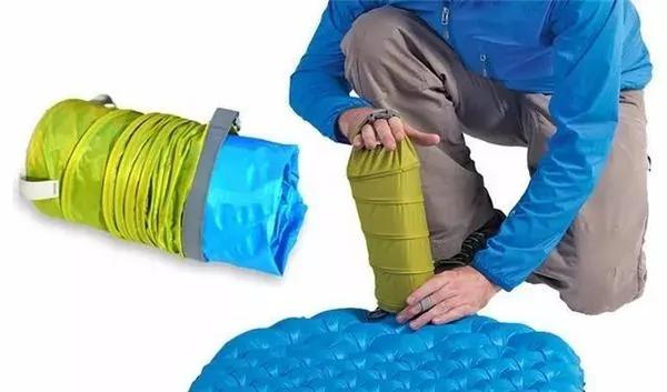 不管是睡在草地上还是睡在沙滩上,都不会是非常爽的体验,所以说睡垫是个非常不错的选择,如果想要兼顾便携和舒适感,下面这款在全世界口碑都不错。(还特别不占地) Sea to Summit充气床垫 Sea to Summit是来自澳洲的专业户外大牌,它家最喜欢研究的就是轻型户外产品,充气睡垫可以说是他家做的最好。 这个睡垫有6个不同的型号可以选择,其中徒步君建议选择 Comfort Plus这一款,虽然有点重(788g,说实话就3 iPhone,也不沉),但是舒适感超强,在草地上也能睡出席梦思的感觉 它除了舒适之外,睡垫的收纳袋也非常有用,能给睡垫充气有木有!连充气泵都省了,这个设计太赞,请允许我跪一下…… 折叠起来以后只有这么点,才一把折叠伞那么大,妥了,就算要支个双人床也不占包里的地儿。