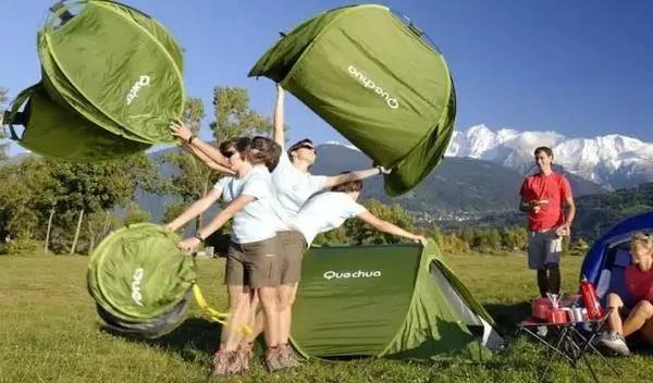 帐篷绝对是包里占地方的元凶,很多背包客都选择把帐篷挂在背包外面,这样简直不爽好么!而且很多帐篷支起来还麻烦的不行,今天徒步君咱就给你推荐俩最便携好用的帐篷。 Fistral充气帐篷 每次露营,都要背着硬硬的帐篷支架出门,抓狂的要命有木有?但是这个帐篷,只需要充气就能瞬间搭起来,苦于大帐篷的少年一定要试一试。 它由充气支撑框架和帆布表面两部分构成,当需要它的时候,将没有气瘪了的它放在地上,再用气泵往里面充气,1分钟就OK,超方便。 这款帐篷内部能容纳下两个人,高1米,内部空间大约5平方米,这么大的帐篷仅重2.5kg,两人通行的话这个帐篷简直就是神器。 内部还有防虫网,可以避免夏天露营被蚊虫侵袭,帐篷还有两个通风口,可以保证内部空气随时处于新鲜状态。 DECATHLON速开帐篷 如果觉得上面那款还是有点贵?可以选择迪卡侬的这款速开帐篷,虽然相比上面那货要沉一些(3.5kg),但是它在方便程度上绝对不输上面那货。 打开的过程,如果非要极果君形容一下的话,那就是:“只需要两秒,Duang一下就好了。”(没懂?不如看看下面这张图) 这款帐篷除了能迅速打开之外,表面完全防水,通风做的也非常不错,,四面通风对于一个帐篷来说是很难等可贵的! 唯一的缺点就是放帐篷容易,收起来有一点点麻烦,但是熟练了以后也仅仅花5分钟就能搞定了,大家可以跟着说明书上学一学,总之要比拆装骨架的帐篷方便太多太多~