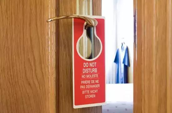有些人去酒店无非就是想做些“私事”,这话咱也不说破,该懂的都懂。但酒店毕竟不是你家,关上门就完事了。一不小心被开门撞上尴尬事的例子也是屡见不鲜。所以,如果你真想一个人清静清静,与世隔绝,那可别忘了关门前挂上“请勿打扰”的牌子,客房保洁人员自然会绕道走开,这样你就爱咋咋地吧。