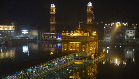 哈曼迪尔寺(位于旁遮普邦阿姆利则):哈曼迪尔寺是锡克教徒的圣地,还被称为“金庙”,坐落于一个湖的中央。寺庙金色圆顶闪烁的光芒倒映在清澈的花蜜池水中,欢迎着从北门进入的人们。