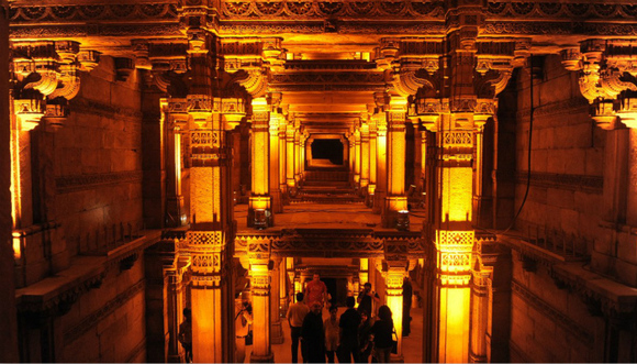 阿达拉杰阶井(位于艾哈迈达巴德阿达拉杰):阿达拉杰阶井是印度伊斯兰建筑设计的出色体现,它是始建于1499年的五层阶井。所有的墙面均雕刻上了精美的图案,比如花、鸟和神话情节。