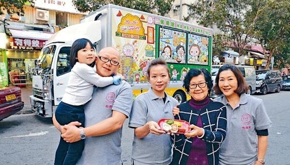 “有得饺”美食车的经营者廖震豪一家。图片来源:《星岛日报》