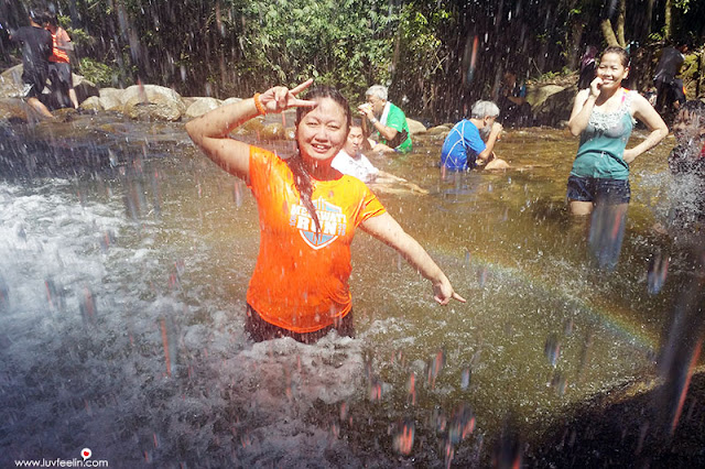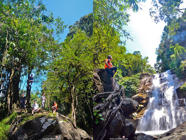 一般的距离大约是两个小时的脚程,听起来好像要走很远,有些不曾爬山的朋友就已经被这个时间给吓得不敢出现。实际上当你和一大班朋友边走边聊,再拍点照片的话,那瀑布也就一眨眼就到了,信我!我们这样停停走走拍拍照,不知不觉就来到了一个小瀑布 (Lubuk Mecu)。