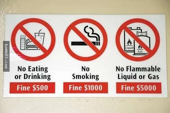 ▼新加坡:小心被罚款,在新加坡,喂鸟、随地吐痰、乱扔垃圾、在公共交通上吃东西喝饮料等等都会被处以高额罚款。