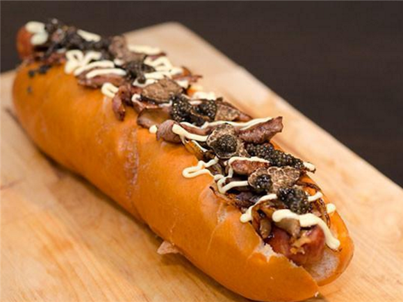 神户牛肉、鹅肝、松露和鱼子酱:售价130英镑的热狗你需要至少提前两周预定才能吃到Tokyo Dog推出的这款售价169美元的Juuni Ban热狗。Juuni Ban沿袭了这家店的日本风味,柔软的奶油面包中间铺了许多烟熏奶酪烤肠、神户牛肉片、日式照烧洋葱片、舞茸、鹅肝酱、黑松露、鱼子酱和日本蛋黄酱,用料相当之丰富。尽管你可能只花了不到五分钟就把这枚昂贵的热狗吃完了,但你一定会觉得这两周的等待是值得的。并且Juuni Ban热狗的所有利润都会捐献给美国红十字会。
