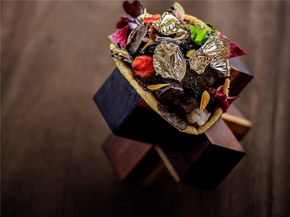 金箔片、鱼子酱、麝香咖啡——售价19000英镑金箔和鱼子酱是世界上最昂贵菜品的标配配料,最昂贵的墨西哥卷也不例外。你可以在墨西哥五星度假村Grand Velas Los Cabos的弗里达饭店里吃到这款售价25000美元墨西哥卷,它由神户牛肉、海螯虾、阿尔玛白鲸鱼子酱(世界上最昂贵的)、黑松露布里干酪以及智利辣椒洋葱酱、麝香咖啡和Ley .925 añejo龙舌兰混合而成。最后在墨西哥薄饼上面覆盖一层金箔。是的,五位数的价格只包括这枚墨西哥卷。度假村的住宿费当然也不含在其中。