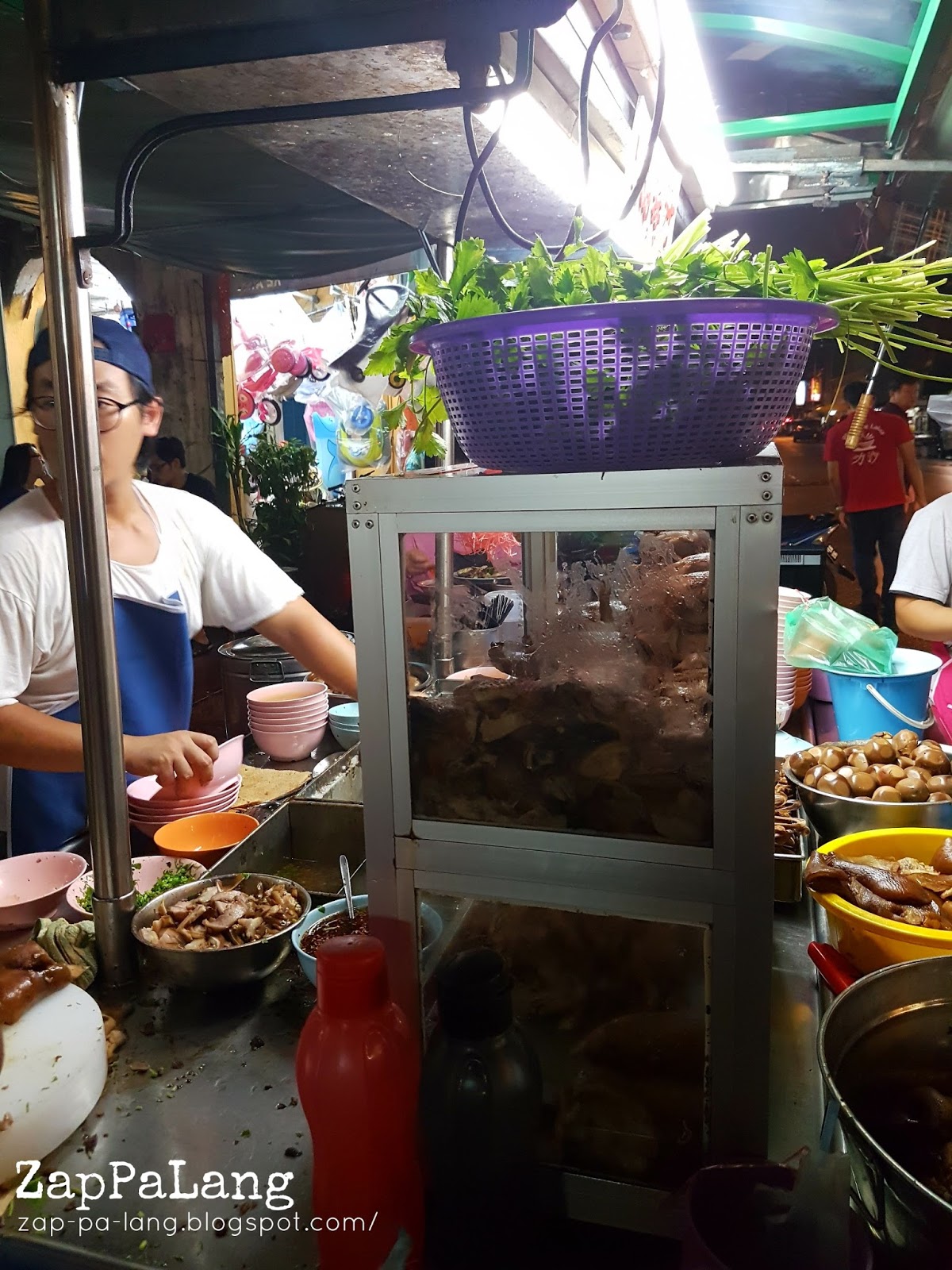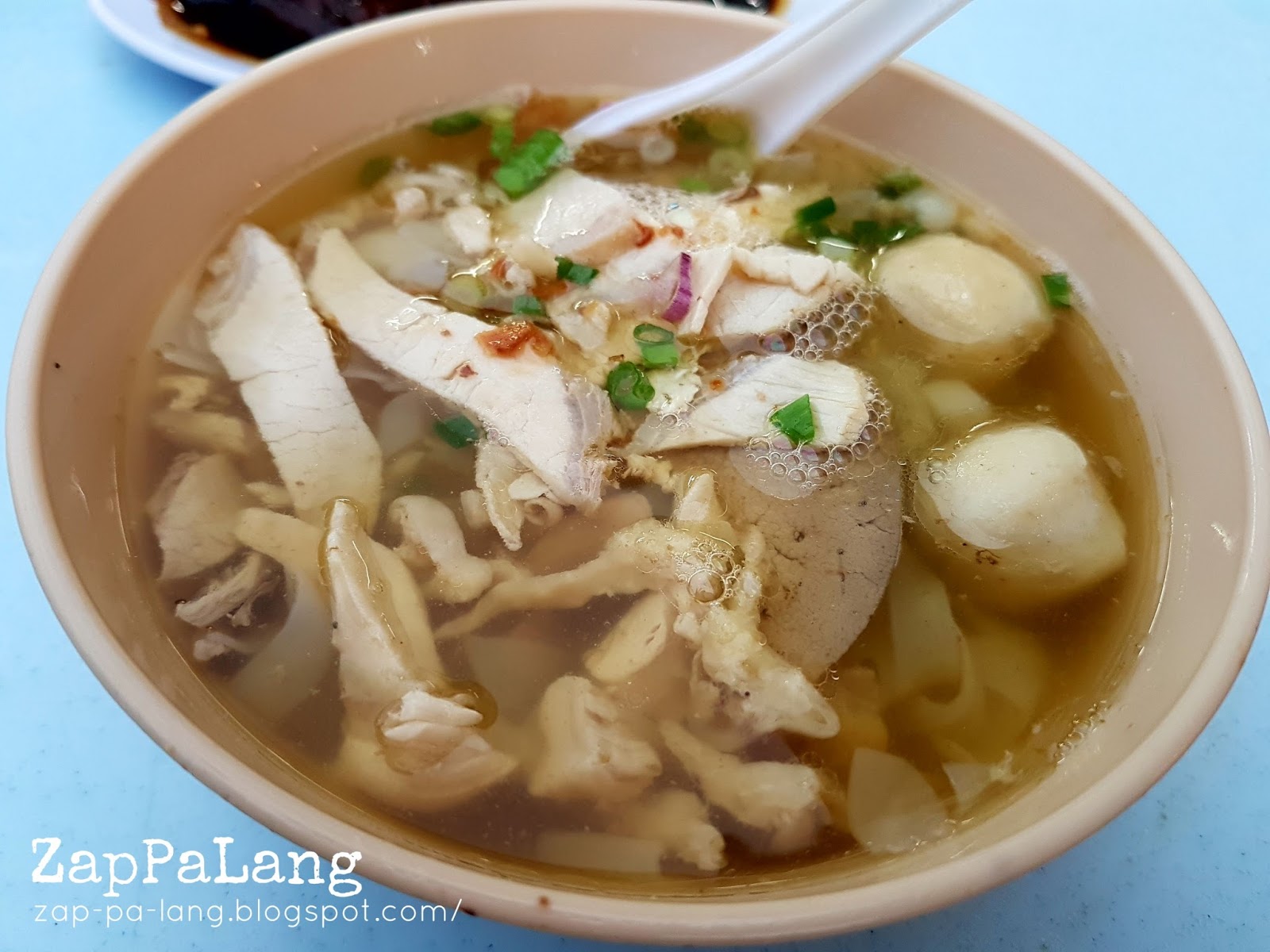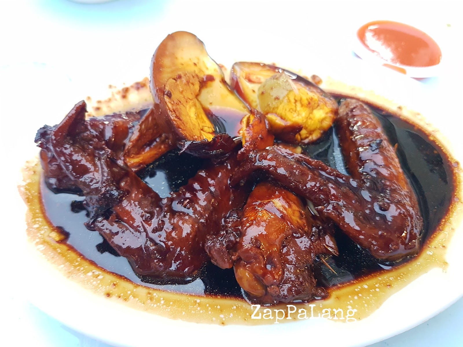 在权记正对面街的天皇鸡脚粿条汤也是四宝之一,这里的粿条汤汤头很清澈,是一碗很清淡普通的粿条汤,不过真的没什么特别。我没选鸡脚不过选了卤鸡翅和卤蛋来代替,鸡翅的皮是卤到会粘嘴唇的那种程度,卤汁属于那种有很浓酱油跟糖味的那种,不过肉没入味,我有点失望。