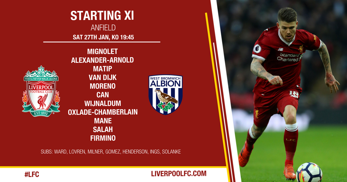 第19分钟,阿诺德传中到禁区,西布朗后卫头球解围,罗伯特森跟进左脚抽射,打中防守球员出了底线。第25分钟,西布朗维奇左侧进攻拿到角球,传中到前点被解围。第31分钟,卡努右侧突破挑射,卡里乌斯没碰到皮球,皮球击中横梁弹出底线。第38分钟,阿诺德右侧传中,萨拉赫点球点抢射,皮球偏出底线。第43分钟,洛夫伦长传左侧菲尔米诺,后者横向突破到禁区,一脚抽射打在对方球员身上弹出,萨拉赫再射,再次被挡出。