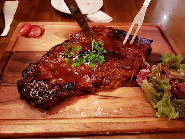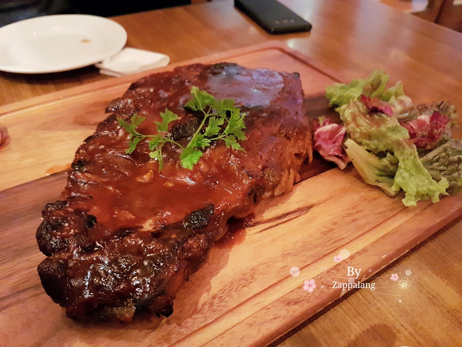 烤得非常软嫩的排骨,轻轻用刀一划,肉就和骨头分开了,酱料也刷得很足够,每一口都吃到入味的排骨,美中不足的地方是配菜给得非常随便,就只有寥寥那几条生菜和小番茄。