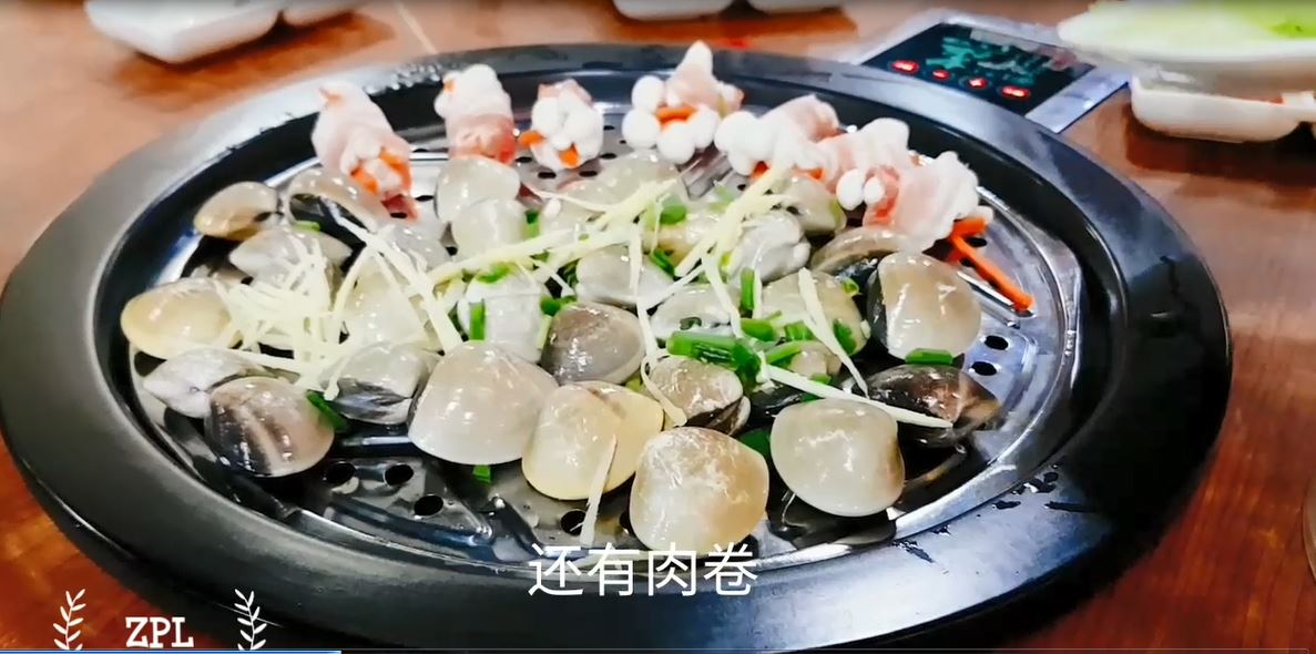 接下来就放上铁盘,开始蒸白蛤和包了金针菇的肉卷。白蛤的味道很清甜,非常新鲜而且个头算大,一点也不腥。肉卷就没什么好说的,没啥特别。