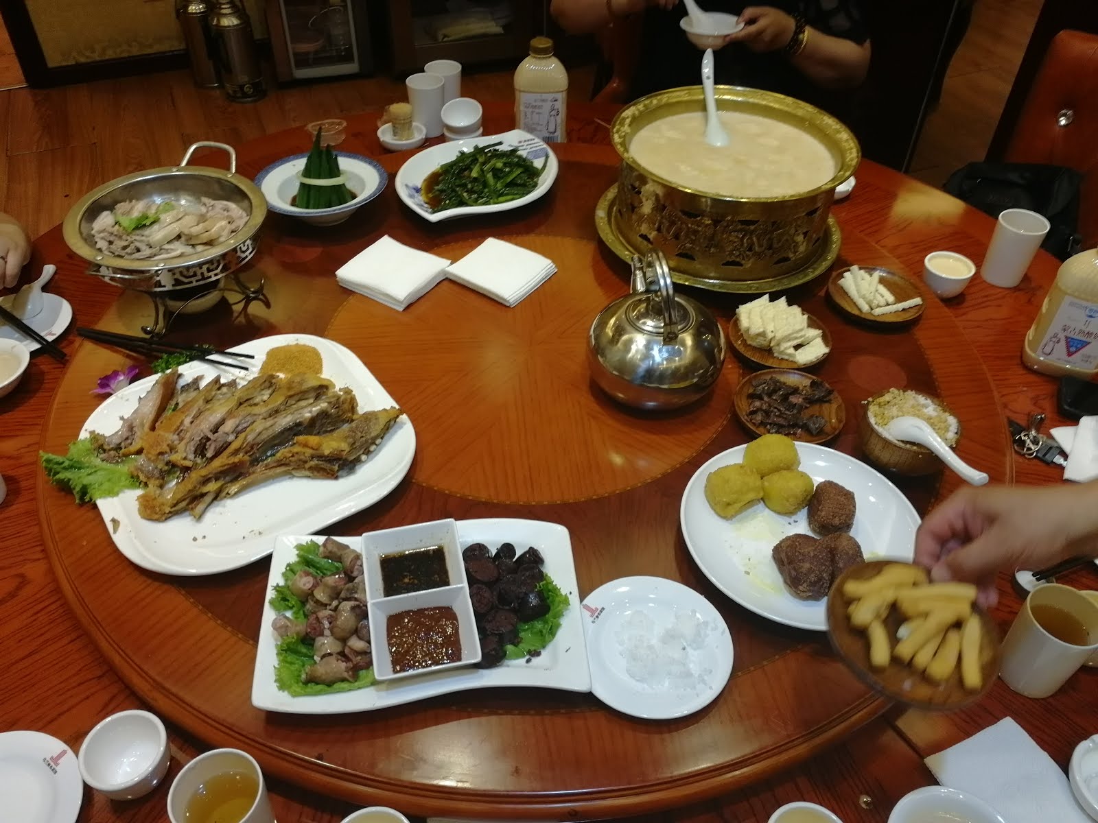 内蒙这边夏天是昼长夜短的,我们7点抵达走出火车站是外面还是晴空万里,就像下午4-5点的亮度。朋友在火车站把我们接上,时间也晚了,就直接到饭店吃晚餐了。朋友说要让我们常常内蒙特色的餐店,所以点了很多道内蒙特有的菜色。