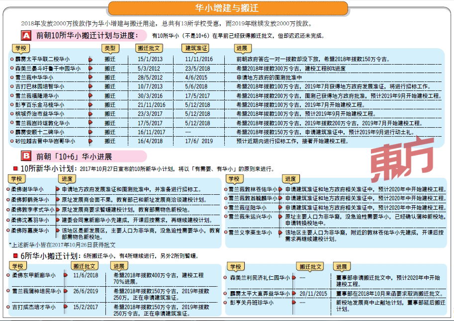 10+6華小計劃中,柔州獲5間新建華小和2間遷校方華小。