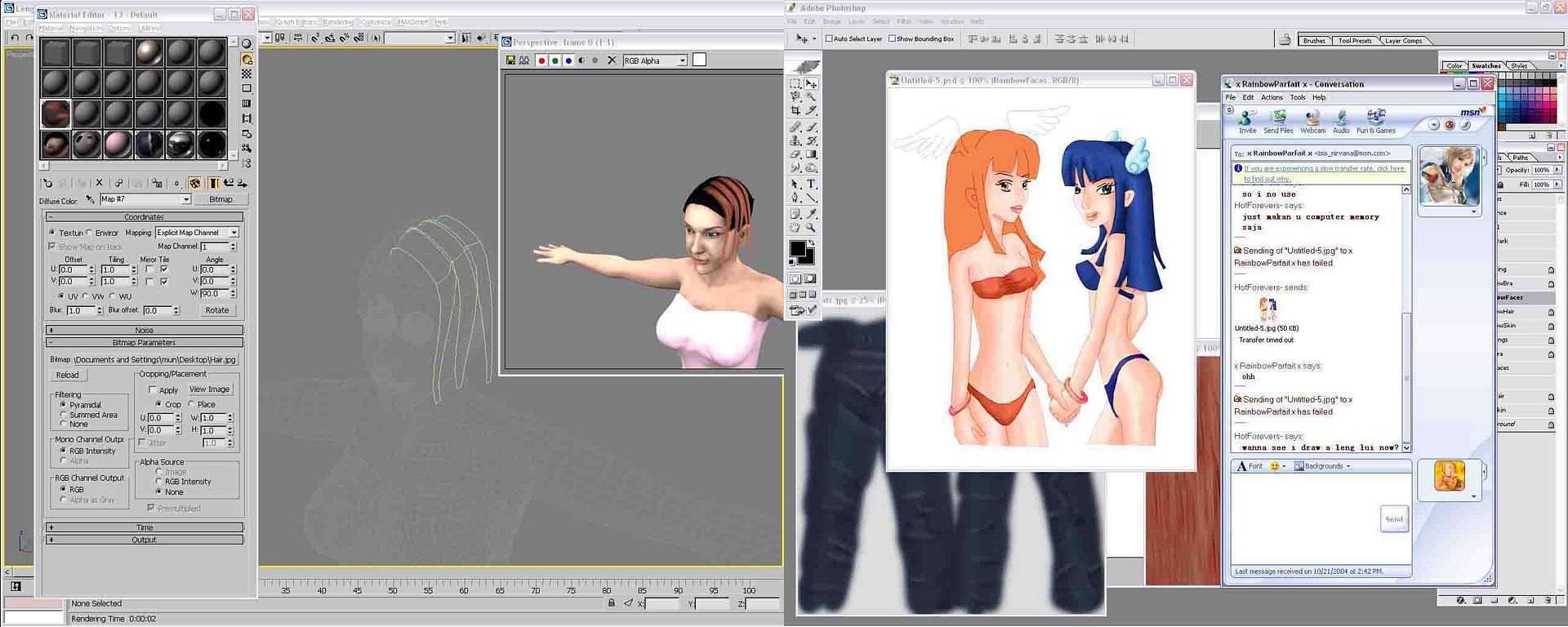 我是吃饱没事做才画OrcGirl的,才四五小时.拿Zbush画了个脸然后Photoshop上色。那只Green恐龙是我看了LordOfTheRing画的. 而Gundam是我买模型跟着画的。我有上色version不是只是silver而以。但是Hard Disk Broken 不见掉了-_-"" |