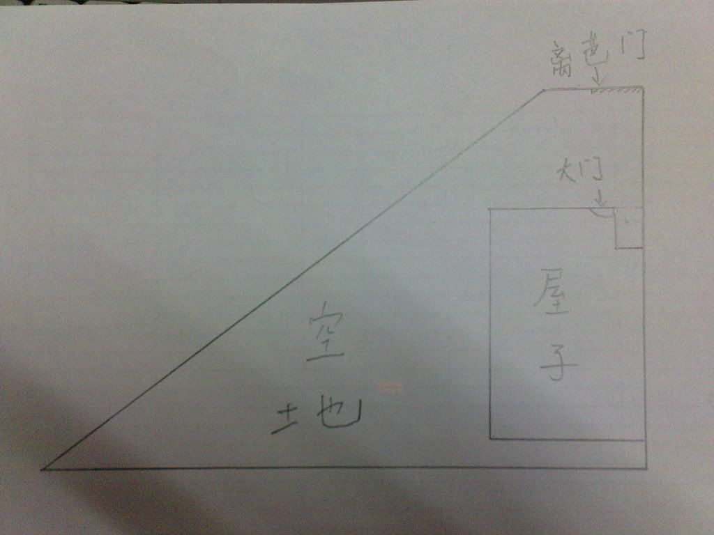 小弟看上了一间角头屋,空地很大,不过朋友说那屋地是三角型的不大好,可是他又说不出怎样不好法.所以想请各路 ...
