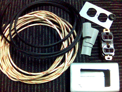 烤漆好了后,材料都齐全了,可以动工了!材料有,两米长的furukawa八号线三条,隔磁套,热收缩管,美式插座,面板,还有盒子。