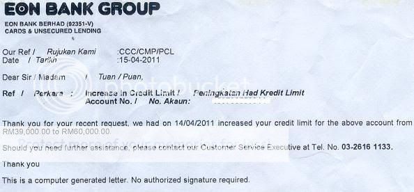 謝謝回覆,我寫那封信給國家銀行只是要問國家銀行的立場于FD pledge卡的申請,因為有些人pledge卡之后再去申請別家銀行的卡。如果ccris那邊有這樣的記錄,最后還是要看個別銀行的批準。 |