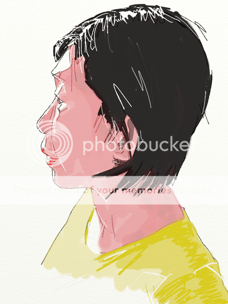透過Ipad 2相機拍照, 或從google 下載照片, 舖在畫紙上勾出輪廓上色, 畫像就醬完成, 即使沒五成像也不會把瘦子畫成胖子, 這是ArtRage 的好處.