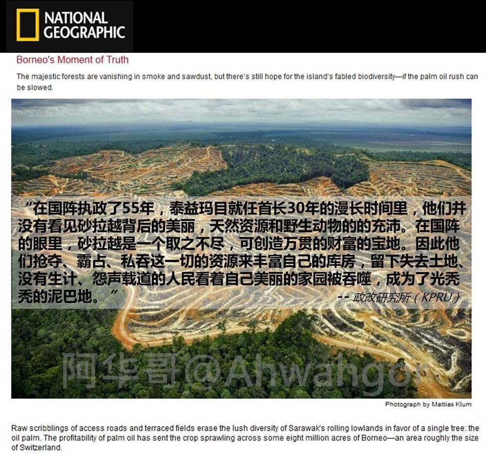 【Admin】政改研究所(KPRU):在国阵执政了55年,泰益玛目就任首长30年的漫长时间里,他们并没有看见砂拉越背后的美丽,天然资源和野生动物的的充沛。在国阵的眼里,砂拉越是一个取之不尽,可创造万贯的财富的宝地。因此他们抢夺、霸占、私吞这一切的资源来丰富自己的库房,留下失去土地、没有生计、怨声载道的人民看着自己美丽的家园被吞噬,成为了光秃秃的泥巴地。