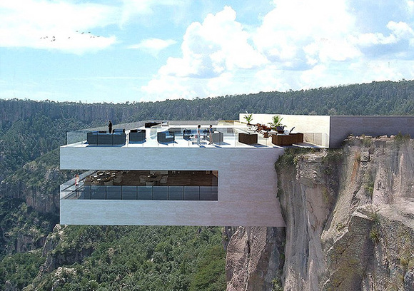 由Tall Arquitectos设计的Copper Canyon Cocktail Bar也是一处位于悬崖边的建筑,在这里你可以把墨西哥巴萨赛奇瀑布国家公园的美景尽收眼底。